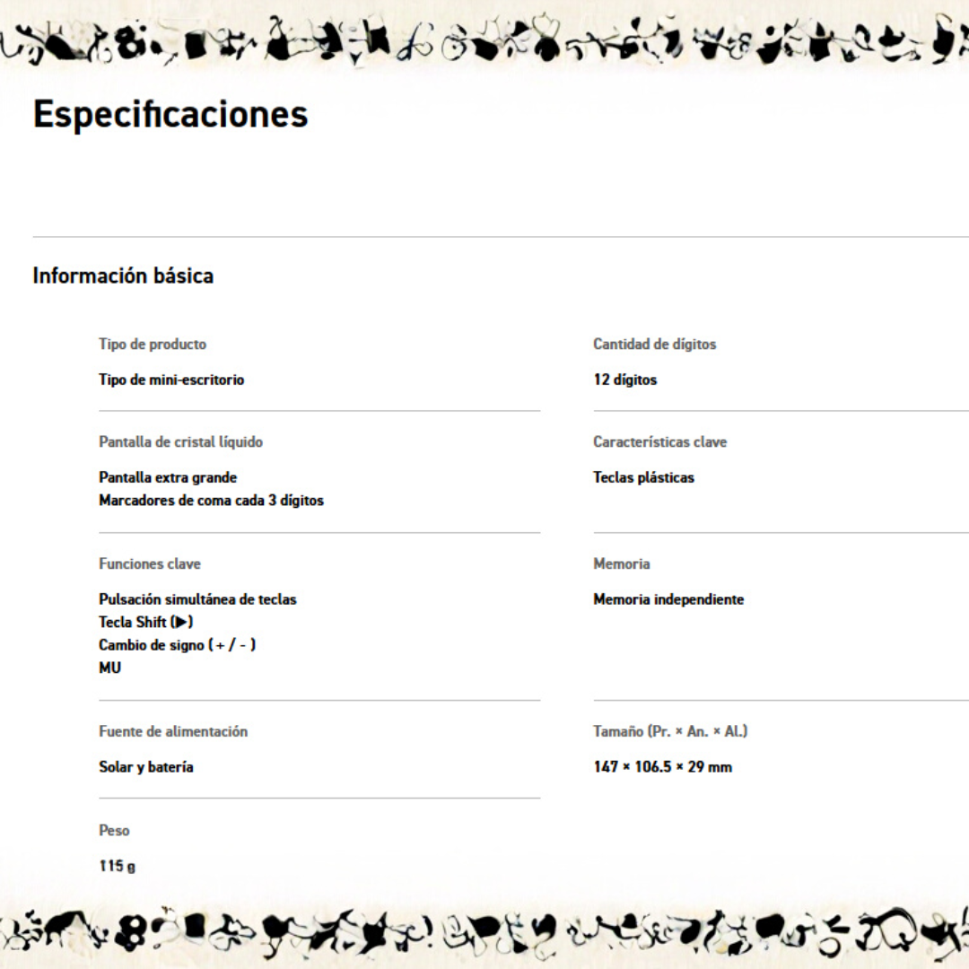 El sistema de teclas plásticas de alta durabilidad ofrece una pulsación suave y precisa, complementada con la función de pulsación simultánea, que evita errores al presionar varias teclas a la vez. Incorpora una tecla Shift (▶) para activar funciones secundarias, así como herramientas esenciales como cambio de signo (+/−), cálculo MU, memoria independiente y operaciones estándar para un uso más ágil y completo.