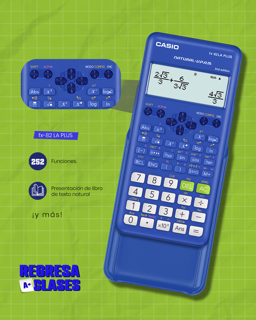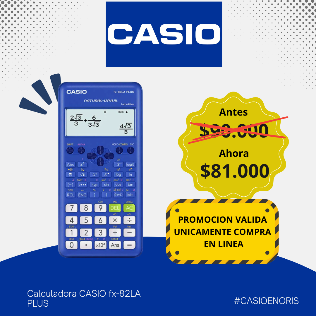 Calculadora Científica Casio FX-82LA Plus está diseñada para ofrecer un rendimiento sólido en todo tipo de cálculos académicos y profesionales. Incluye 9 memorias de variables, memoria independiente (M/M+/M-) y memoria de respuesta, lo que facilita almacenar resultados, reutilizar valores y realizar operaciones complejas con mayor rapidez.