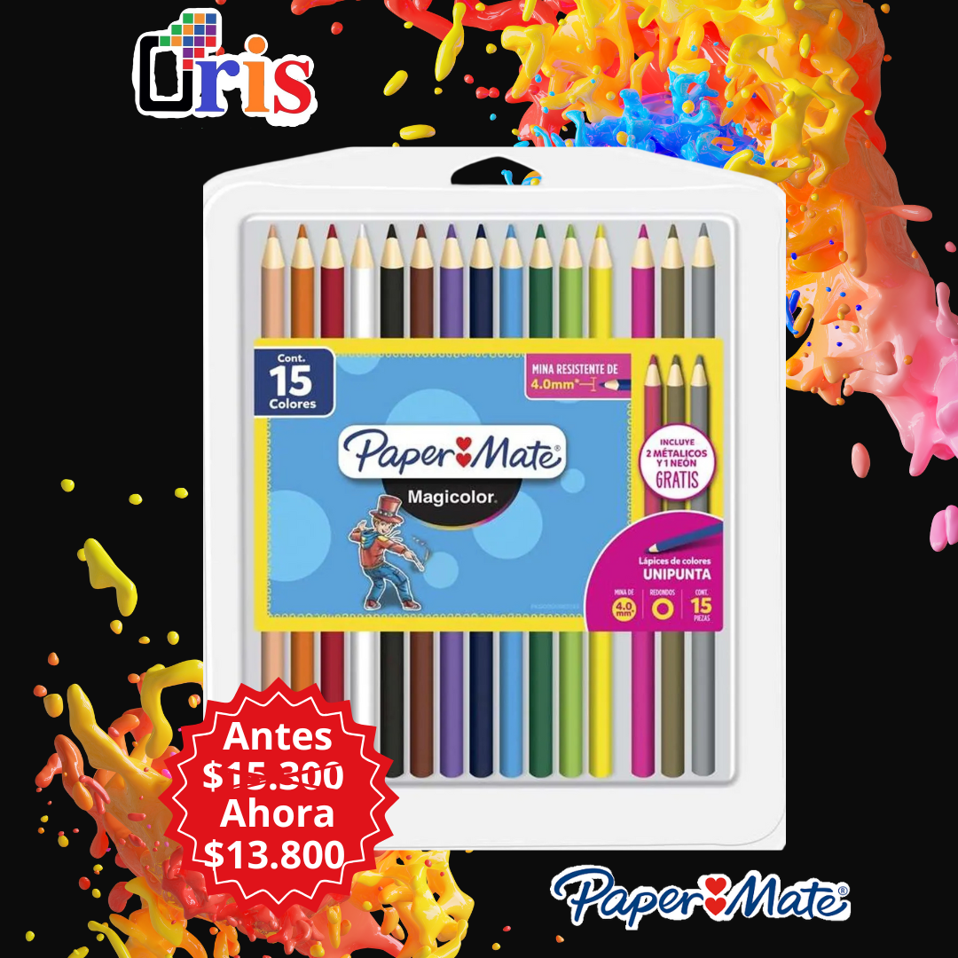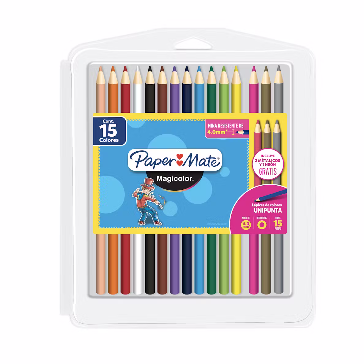 Lápices de Colores Paper Mate Magicolor x15 – Mina Resistente 4.0mm