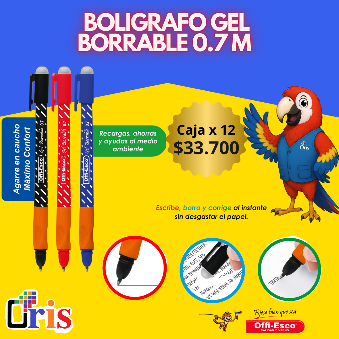 Bolígrafo de Gel Borrable 0.7 mm – Máxima Precisión y Corrección