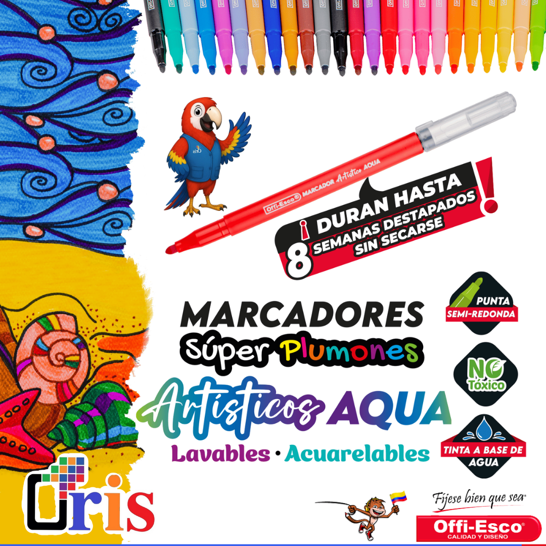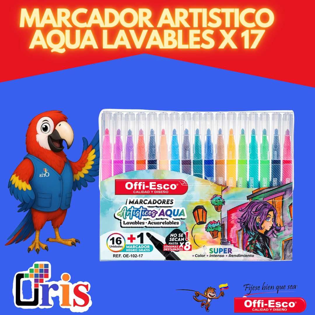 Descubre la calidad profesional y la comodidad de nuestros Marcadores Artísticos AQUA (Referencia OE-102-17). Estos rotuladores artísticos base agua son la opción ideal para artistas, estudiantes y proyectos infantiles, combinando colores vivos con una seguridad inigualable.